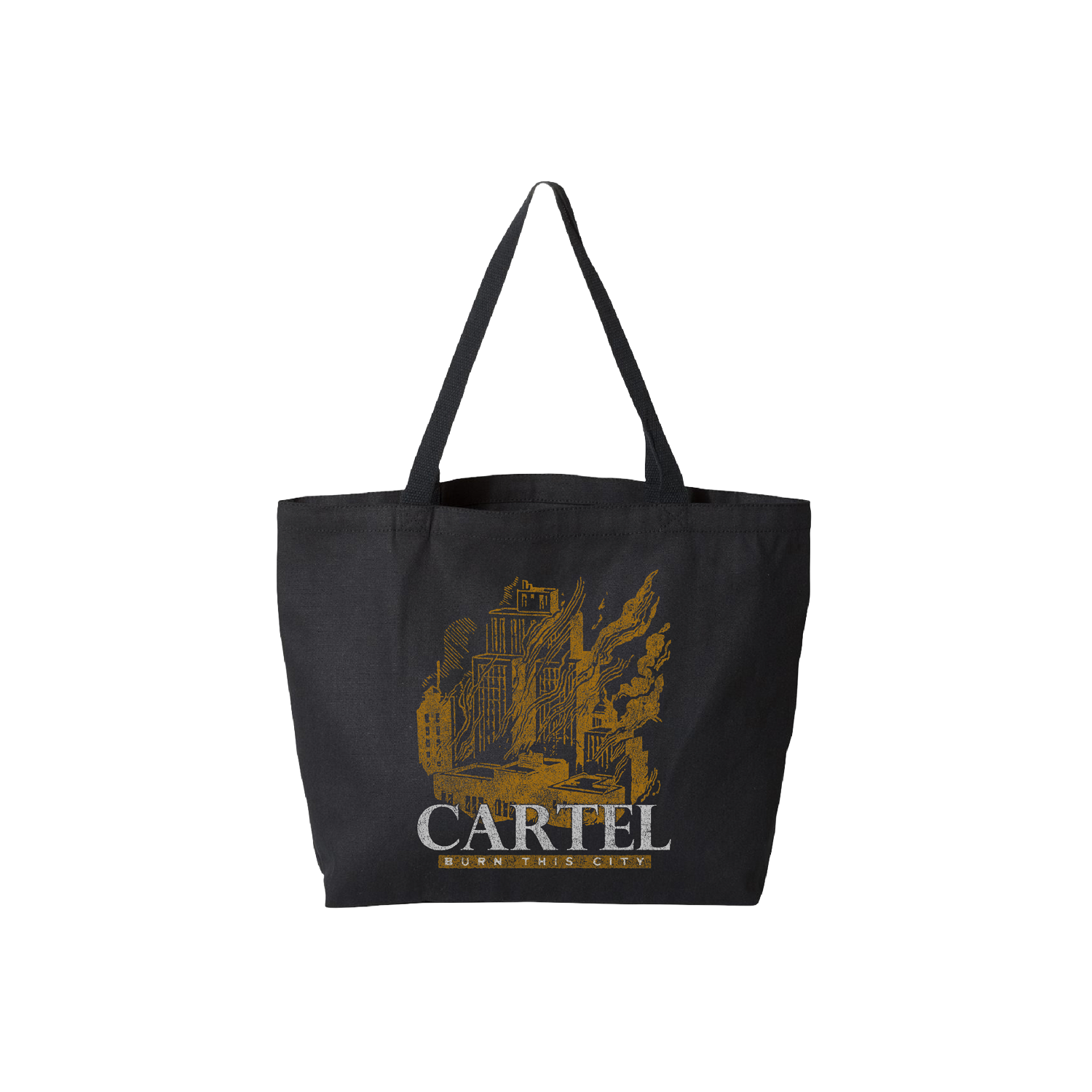 As seen on Cartel's Chroma 20 Year Anniversary Tour - this tote bag feature a design based on the song "Burn This City".
